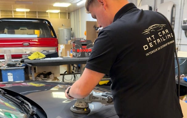 Polijsten gebeurt in verschillende stappen om de lak zorgvuldig te herstellen zonder risico op schade. In de eerste fase gebruiken we een grover polijstmiddel om diepere krassen en oxidatie te verwijderen. Dit maakt de lak weer egaal. Vervolgens werken we met fijnere polijstmiddelen om de lak steeds gladder te maken en de laatste kleine onregelmatigheden te verwijderen. Deze zorgvuldige aanpak zorgt ervoor dat je auto niet alleen een hogere glans krijgt, maar ook dat de finish langdurig mooi blijft. Door in stappen te werken, kunnen we de lak optimaal herstellen en beschermen, wat resulteert in een prachtig eindresultaat zonder onbedoelde schade aan de verflaag. U kunt kiezen tussen 1 Staps, 2 Staps en 3 Staps polijsten.